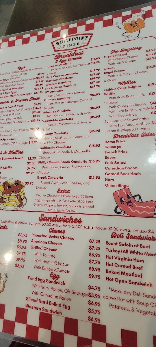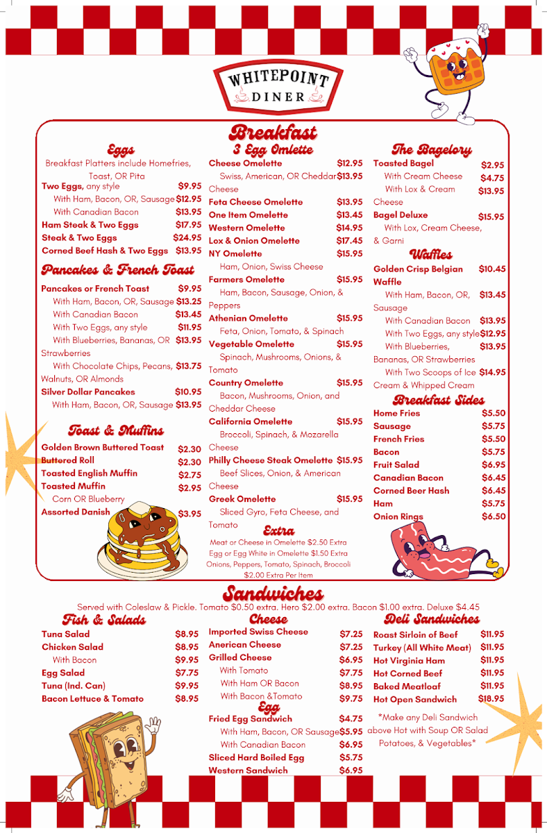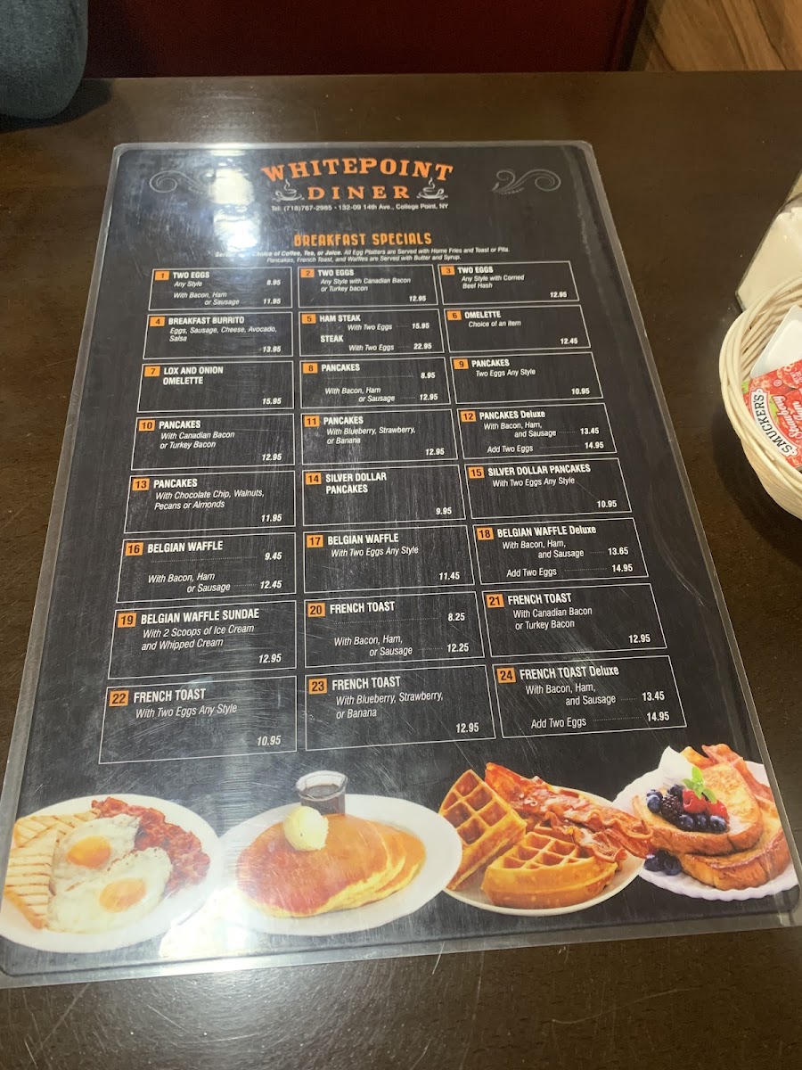 Choice of ham, bacon, sausage or Canadian bacon (extra charge).